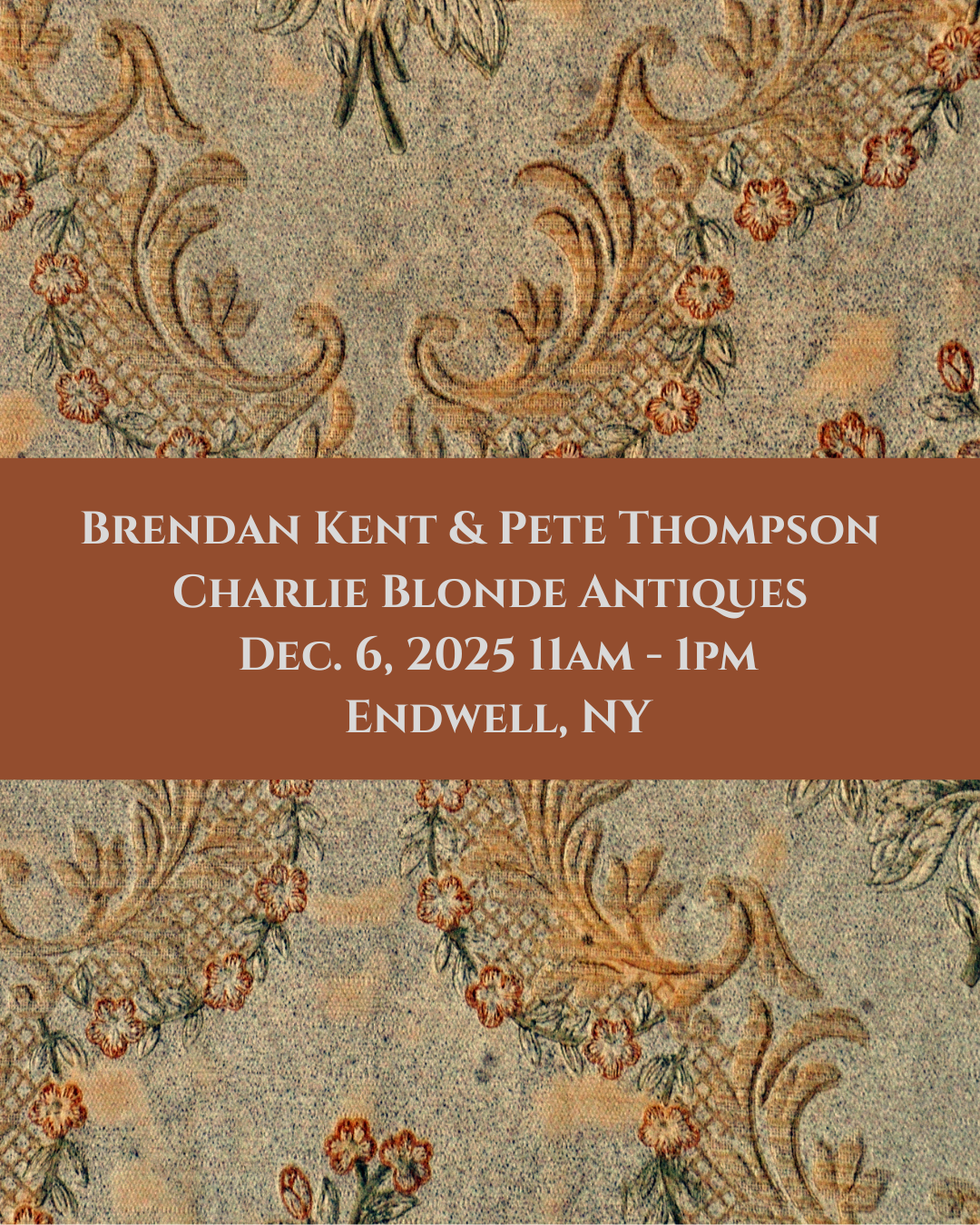 Brendan Kent (fretless clawhammer banjo) and Pete Thompson (fiddle) will play at the Charlie Blonde Antiques open house in Endwell, NY from 11am - 1pm on Saturday, December 6th, 2025.